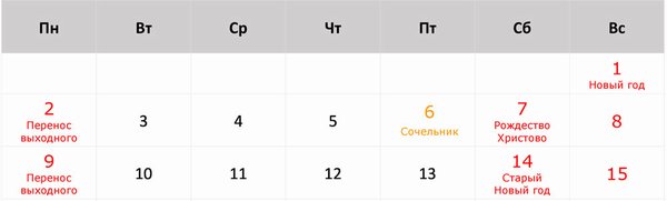 С 07.01.2017 по 09.01.2017 - выходные дни